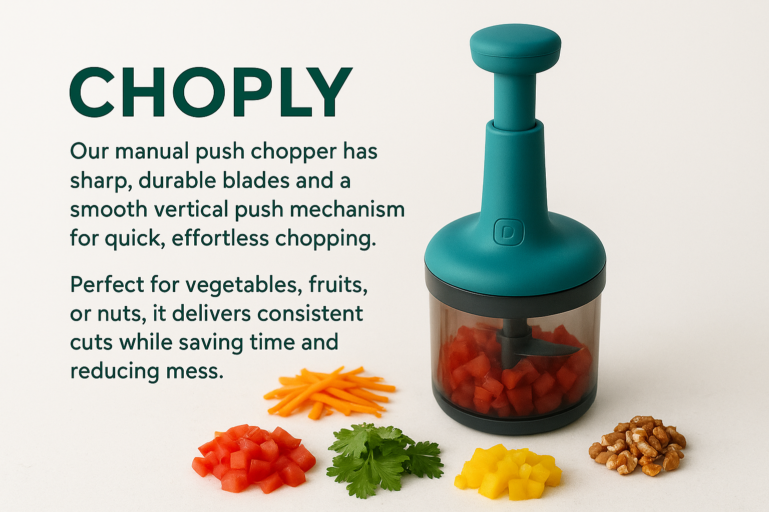 I use the Choply Manual Food Chopper every week for meal prep, and it’s fantastic. It chops veggies quickly and uniformly, making cooking so much faster. The large capacity means fewer batches, and it’s very easy to clean. It’s become an essential part of my kitchen—highly recommend for anyone who loves efficient cooking!